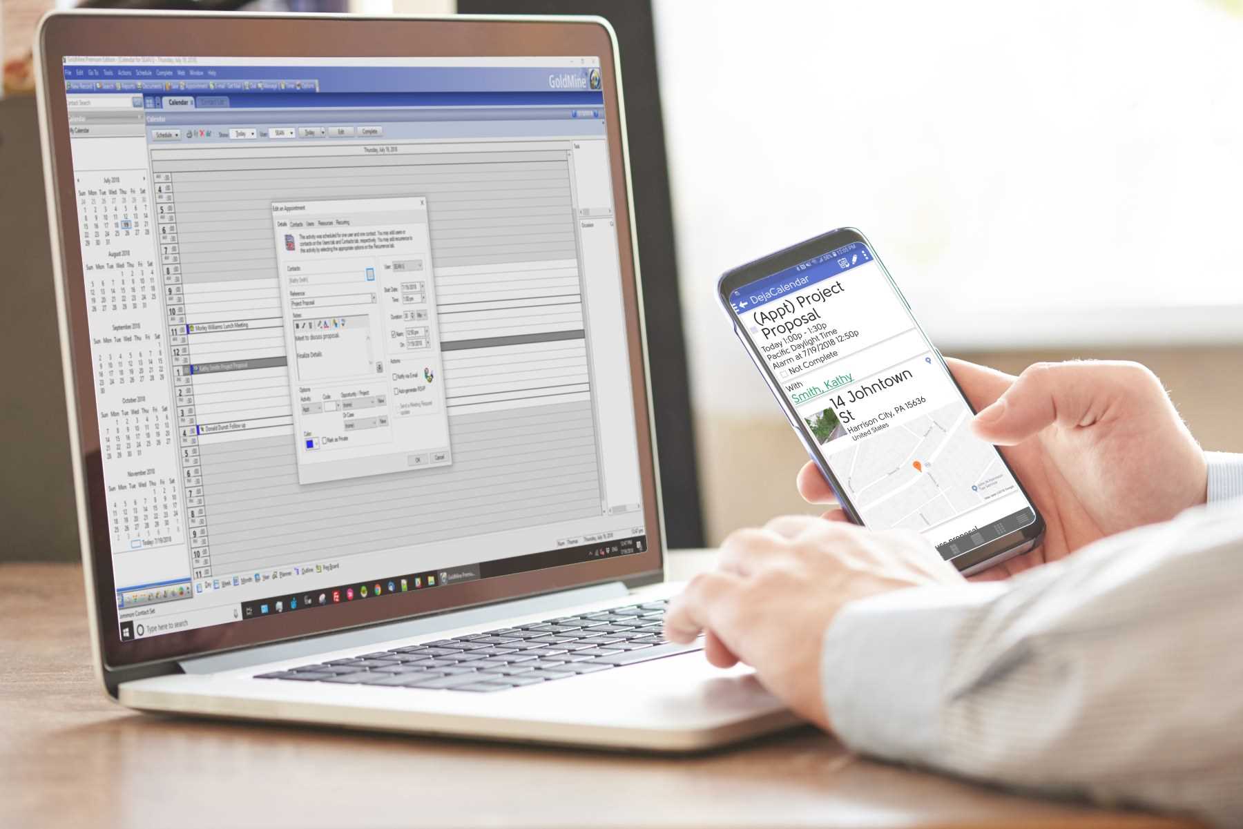 We feature DejaOffice CRM App for iPhone and Android because it is a custom "landing pad" for your GoldMine data. In DejaOffice, you can view Contacts with Notes and Histories schedule Activities, complete Activities, and create History.